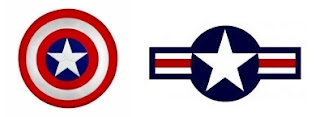 | Alguma semelhança entre o escudo do Capitão América (a esquerda) e o símbolo da Força Aérea dos EUA (USAF - a direita)? |