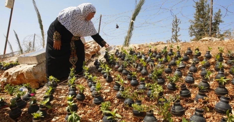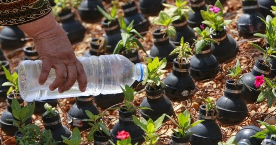 Moradores dessa vila palestina plantaram um jardim em cápsulas vazias de gás lacrimogênio e bombas de efeito moral. São os espólios de anos de conflito com as forças israelenses.